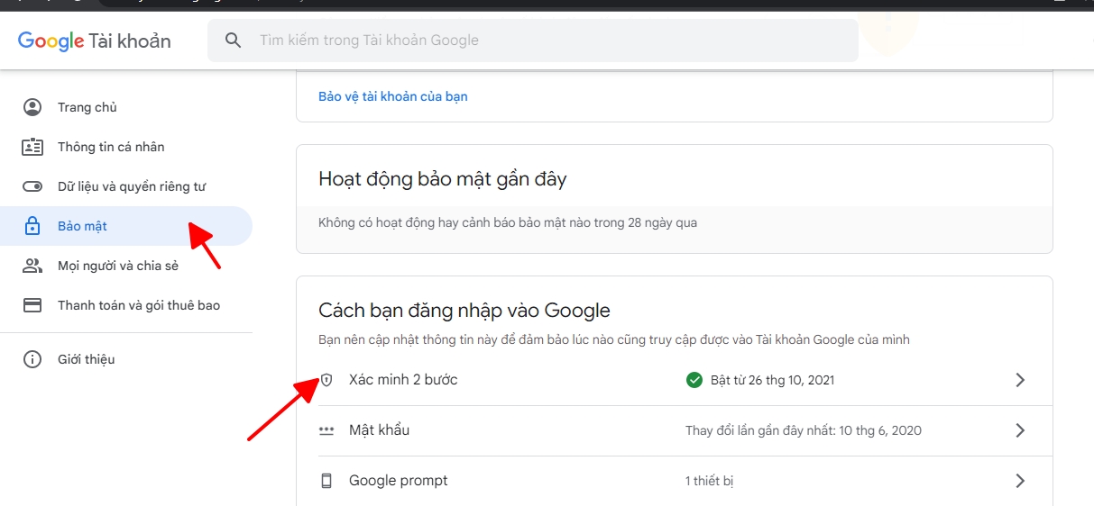 Bước 1: Anh/ chị đăng nhập vào tài khoản Gmail và bật chế độ xác minh 2 bước.