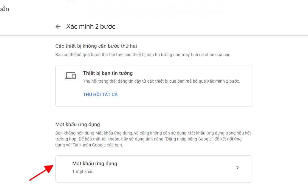 Bước 2: Sau khi bật xác minh 2 bước, hãy chuyển đến "Quản lý tài khoản của bạn" từ tab trang chủ. Bây giờ, hãy nhấp vào tab "Bảo mật" trong ngăn bên trái, sau đó cuộn xuống, anh/chị sẽ thấy tùy chọn "Xác minh 2 bước" -> kéo xuống chọn "mật khẩu ứng dụng", hãy nhấp vào nó. Bạn sẽ được yêu cầu đăng nhập lại vào tài khoản Gmail của mình.