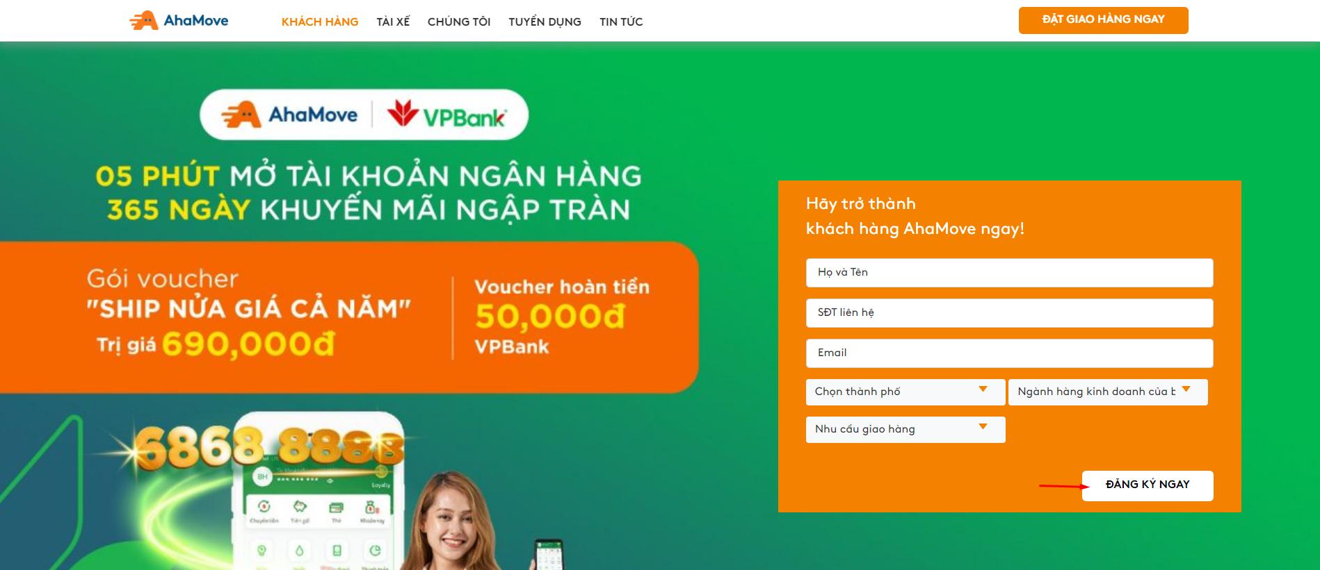 Bước 1 – Tạo tài khoản trên trang Ahamove: https://ahamove.com/