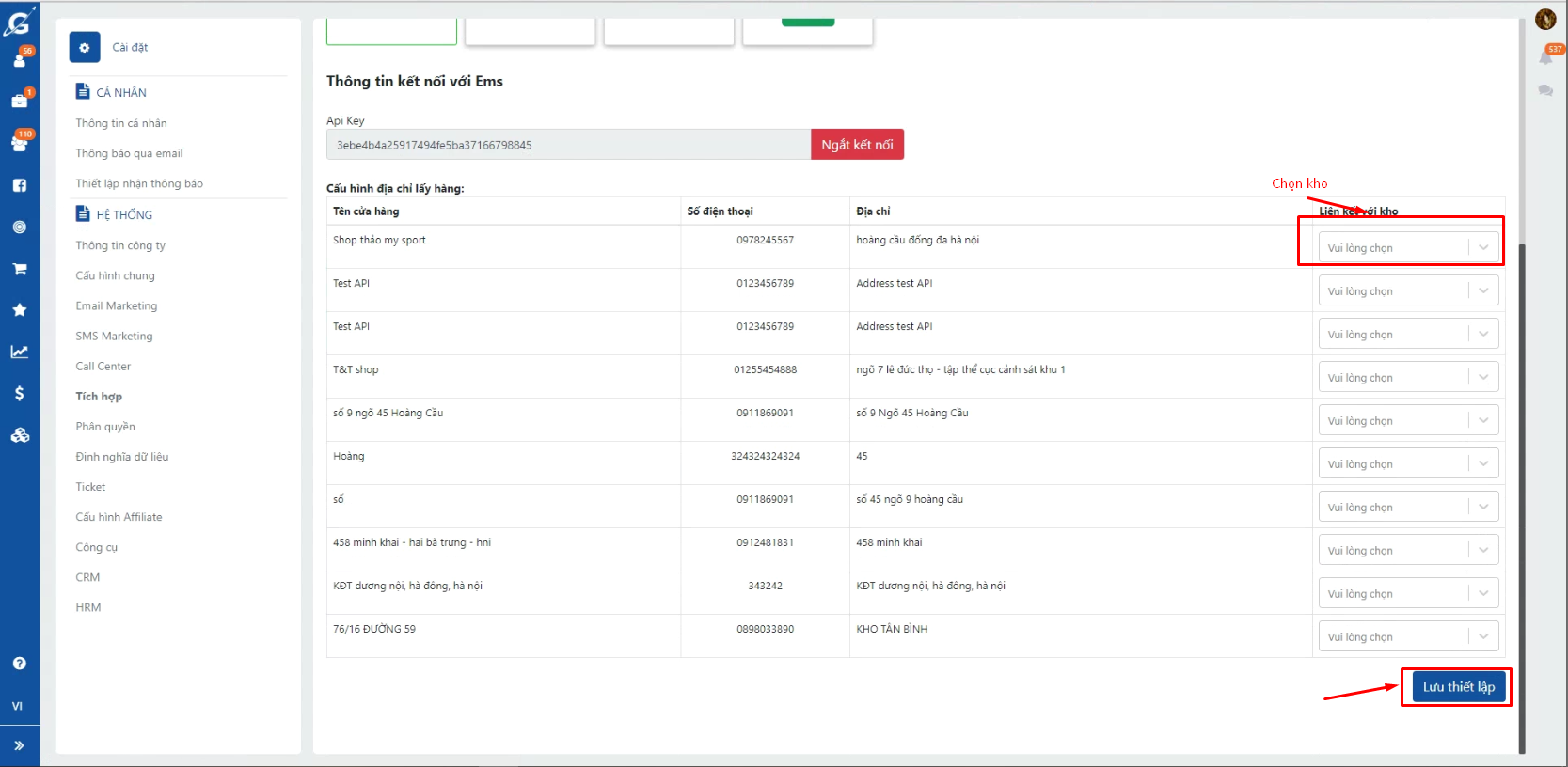 ể tích hợp vận chuyển EMS, anh/chị vui lòng thao tác theo các bước sau: