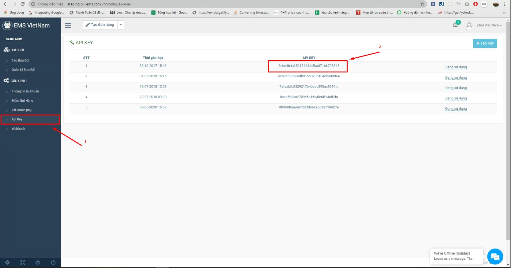 Bước 1: Đăng nhập vào hệ thống EMS để lấy API Key