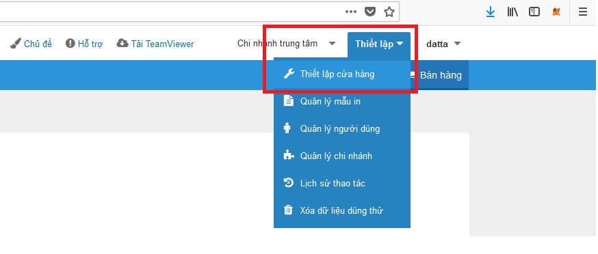 Từ menu Thiết lập chọn Thiết lập cửa hàng