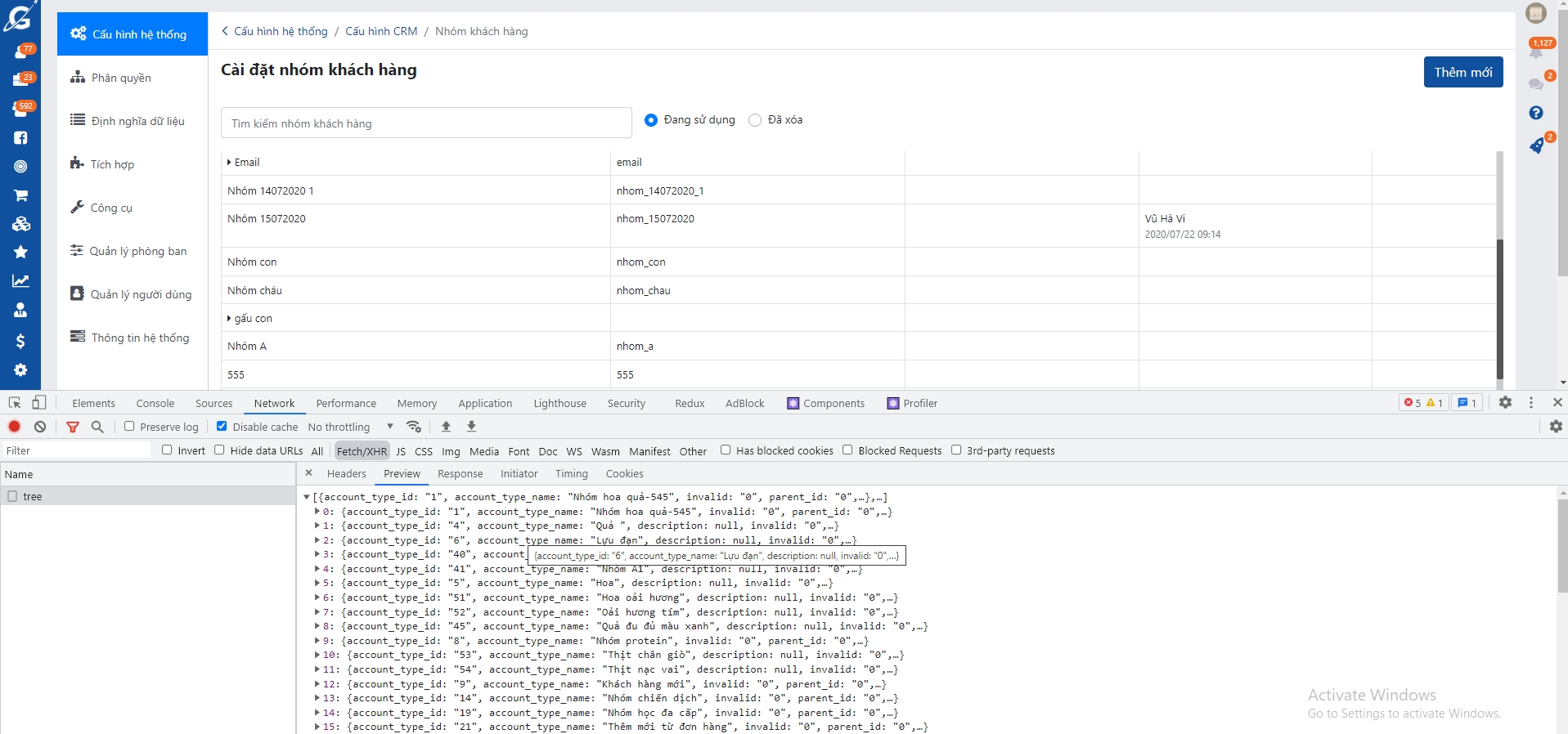 Cách lấy ID nhóm khách hàng: Vào cài đặt>CRM>nhóm khách hàng bật f12 thao tác như ảnh để lấy id nhóm khách hàng ( Hướng dẫn chi tiết https://wiki.getfly.vn/portal/post/1944)
