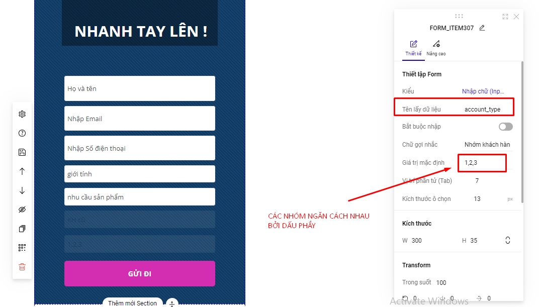 B2 + Giá trị mặc định điền ID nhóm khách hàng muốn đẩy dữ liệu về