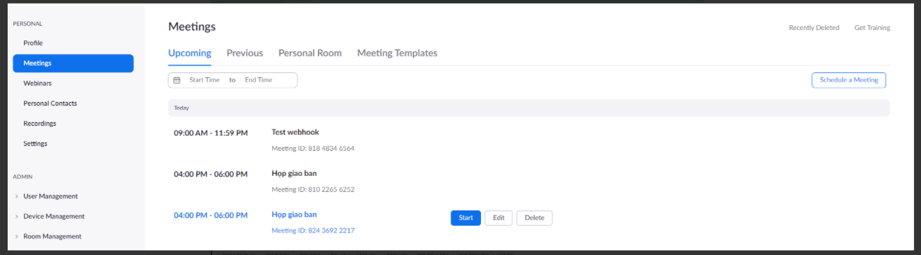 Chọn Participant/Host joined meeting để gọi webhook khi Chủ phòng hoặc khách tham gia phòng họp