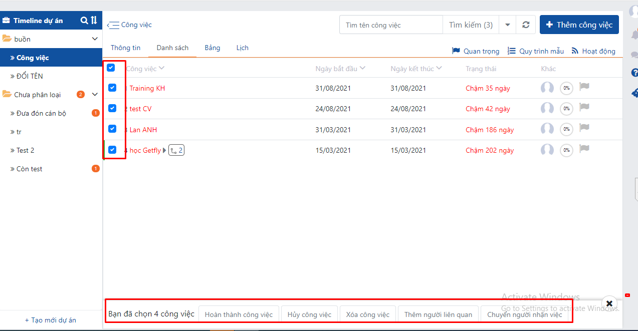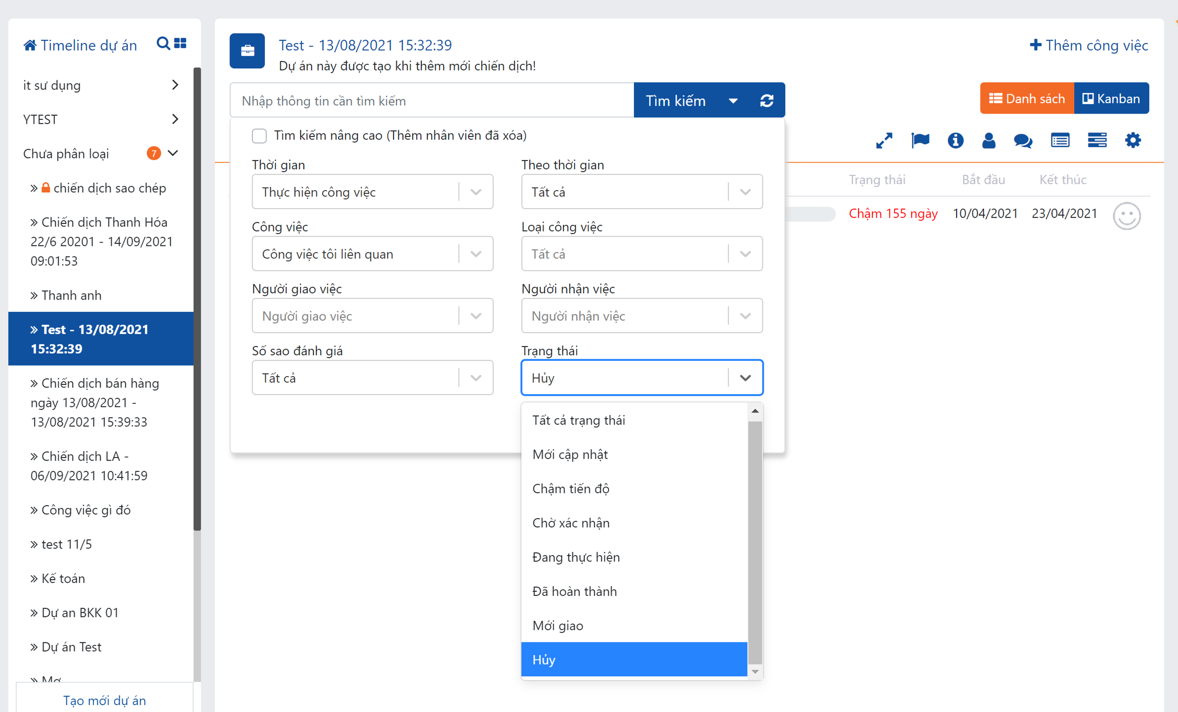 Câu 8. Cách tìm kiếm công việc đã hủy
