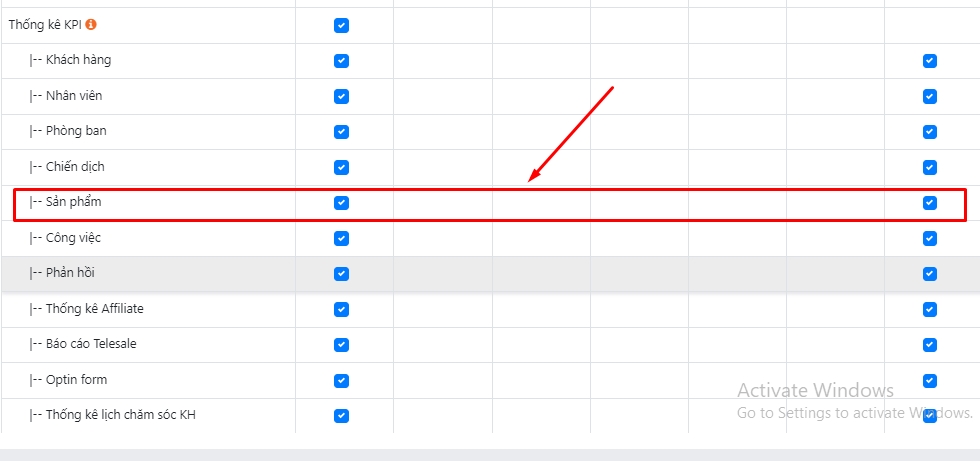 Để xem lợi nhuận sản phẩm tài khoản cần có quyền xem thống kê KPI sản phẩm