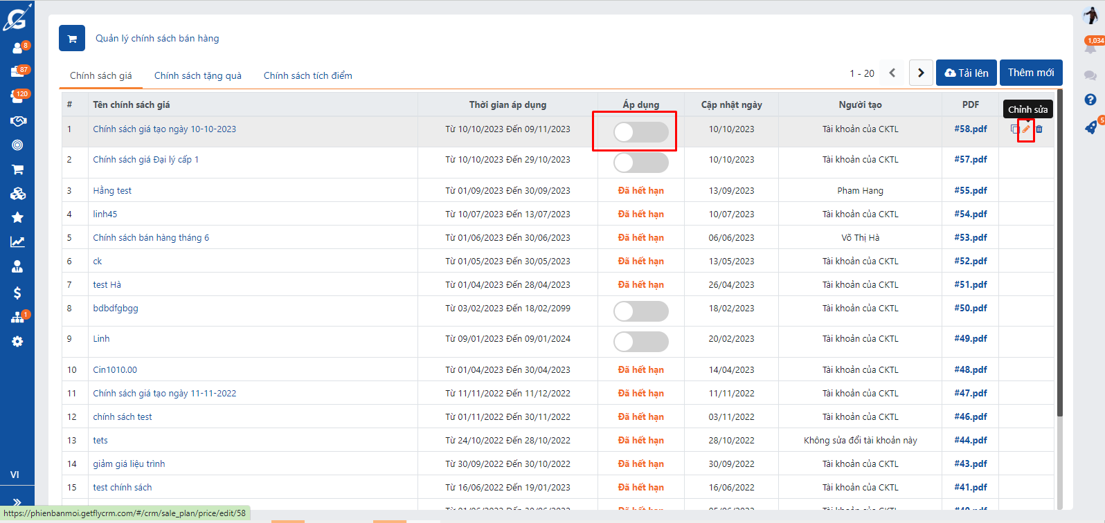 - Anh/ chị có thể áp dụng Cách 1 hoặc Cách 2 để tạo chính sách giá phù hợp với bên mình. Tuy nhiên đều phải về lại màn hình quản lý chính sách giá để kích hoạt chính sách giá sau khi sửa hoặc tạo chính sách.