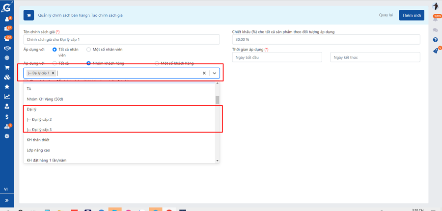 2. Hướng dẫn tạo chính sách giá cho Đại lý: