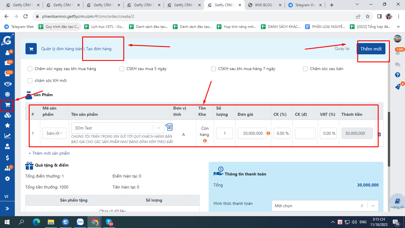 Bước 2: Khách hàng mua hàng => Tạo đơn hàng bán