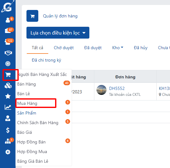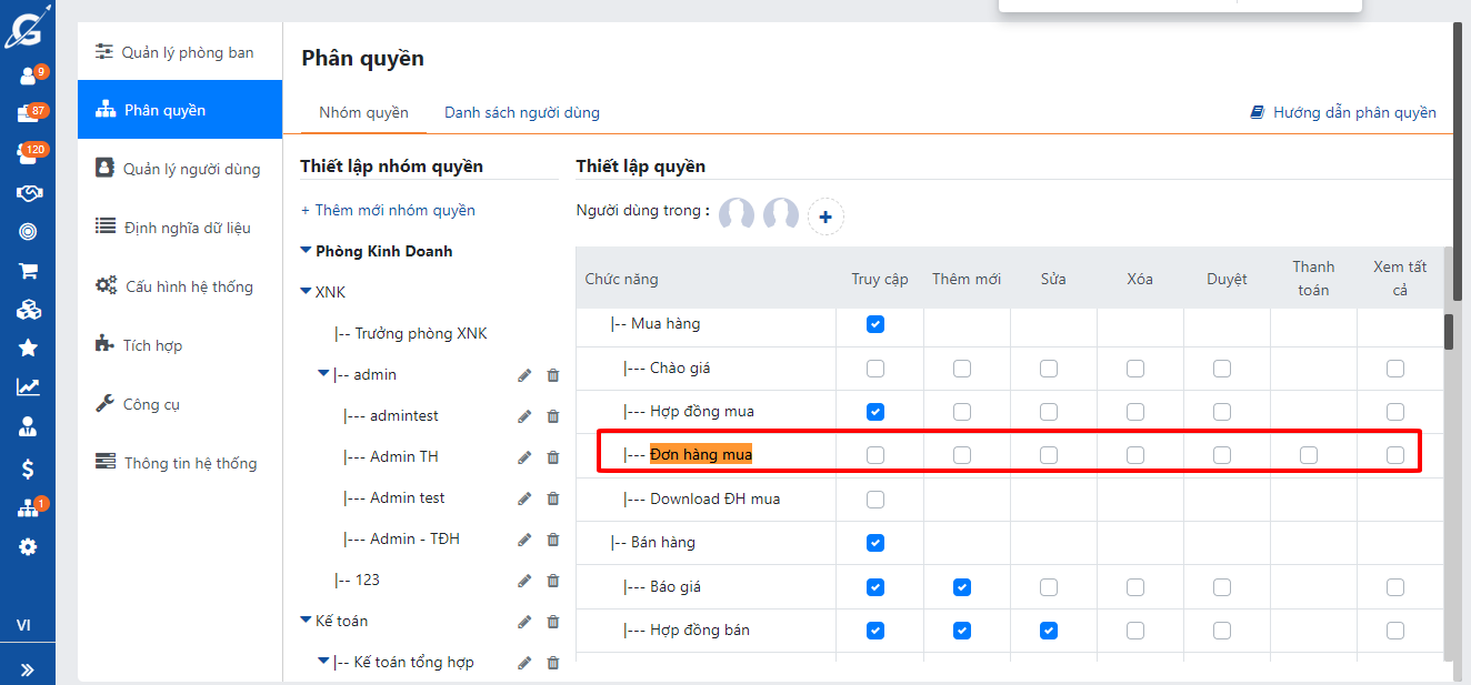 Để theo dõi được các đơn hàng nhập trên hệ thống Getfly, bạn cần được phân quyền liên quan đến " Đơn hàng mua"
