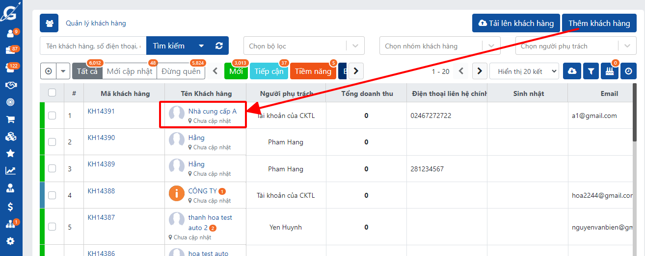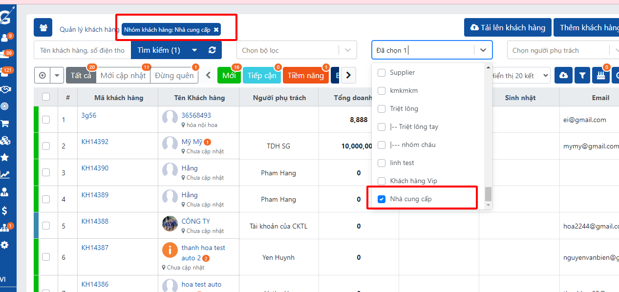 3. Tạo nhà cung cấp trên hệ thống Getfly