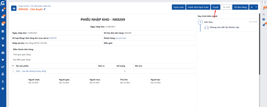 - Còn nếu tạo/cập nhật phiếu xuất/nhập kho có nguồn từ sản phẩm thì vẫn phải duyệt.
