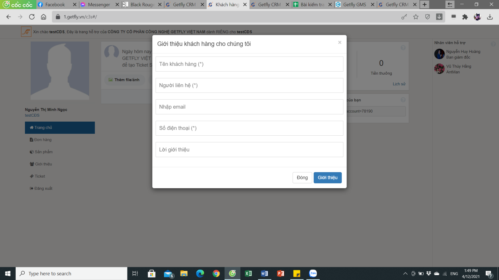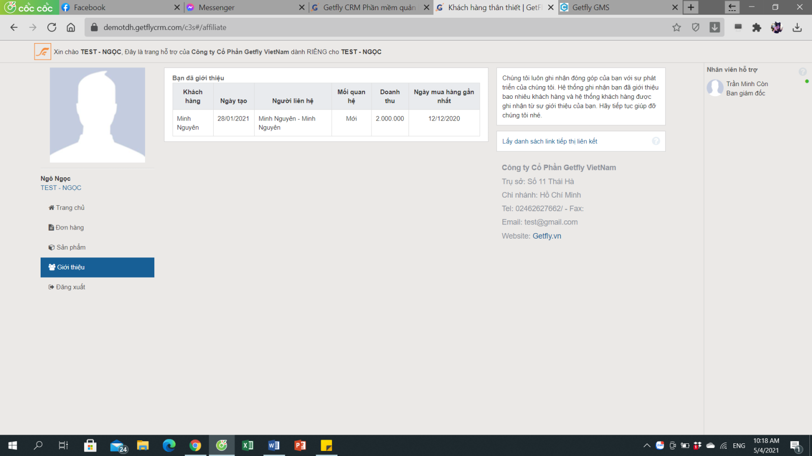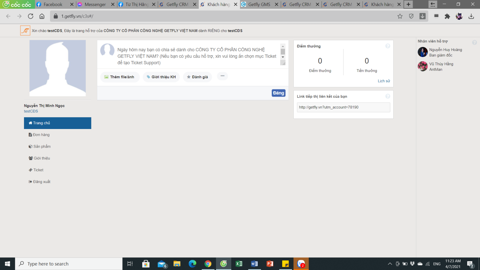 Chúng tôi luôn ghi nhận đóng góp của anh chị với sự phát triển của hệ thống Getfly. Hệ thống ghi nhận anh chị đã giới thiệu bao nhiêu khách hàng và hệ thống khách hàng được ghi nhận từ sự giới thiệu của anh chị. Hãy tiếp tục giúp đỡ chúng tôi nhé.