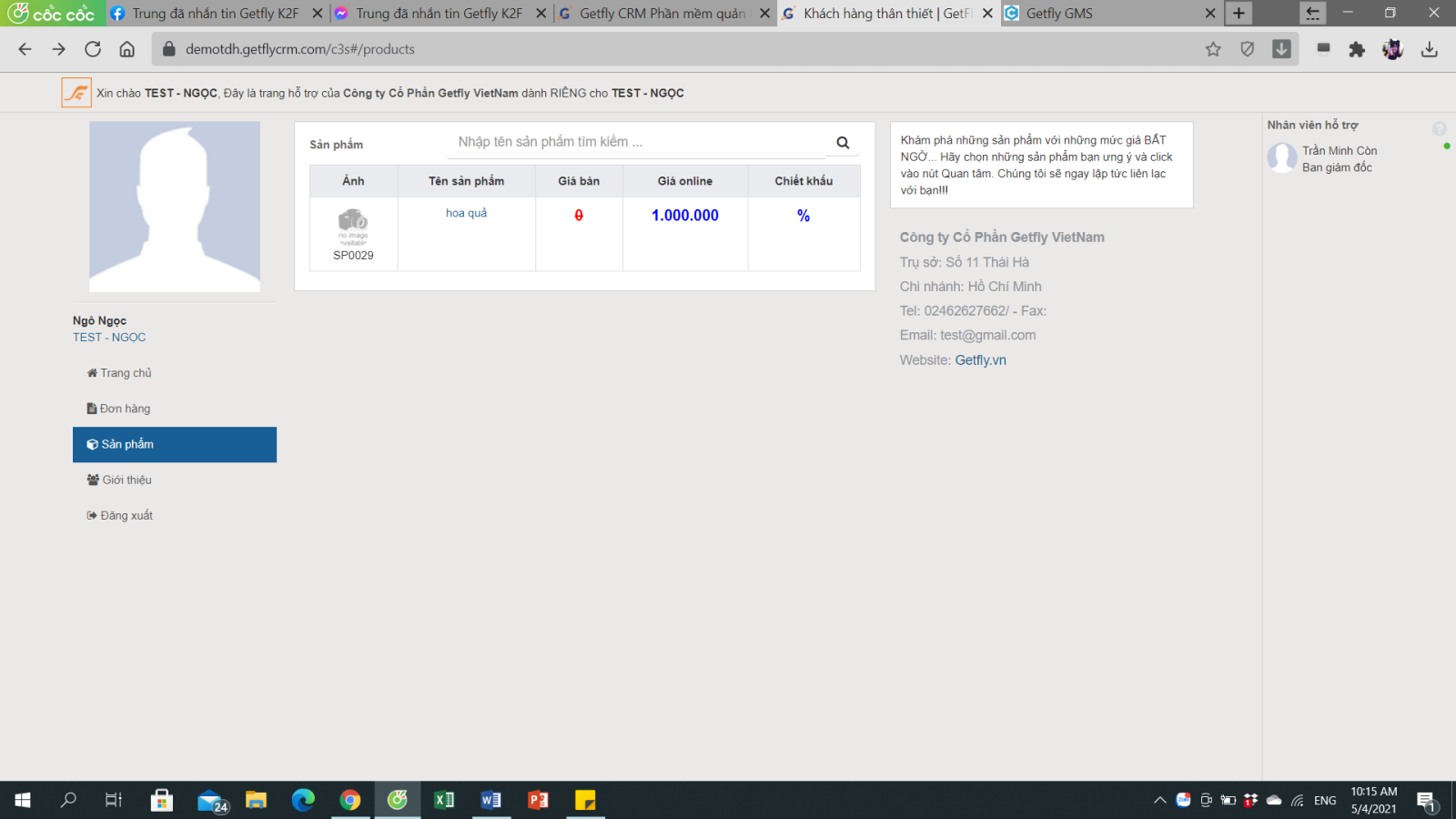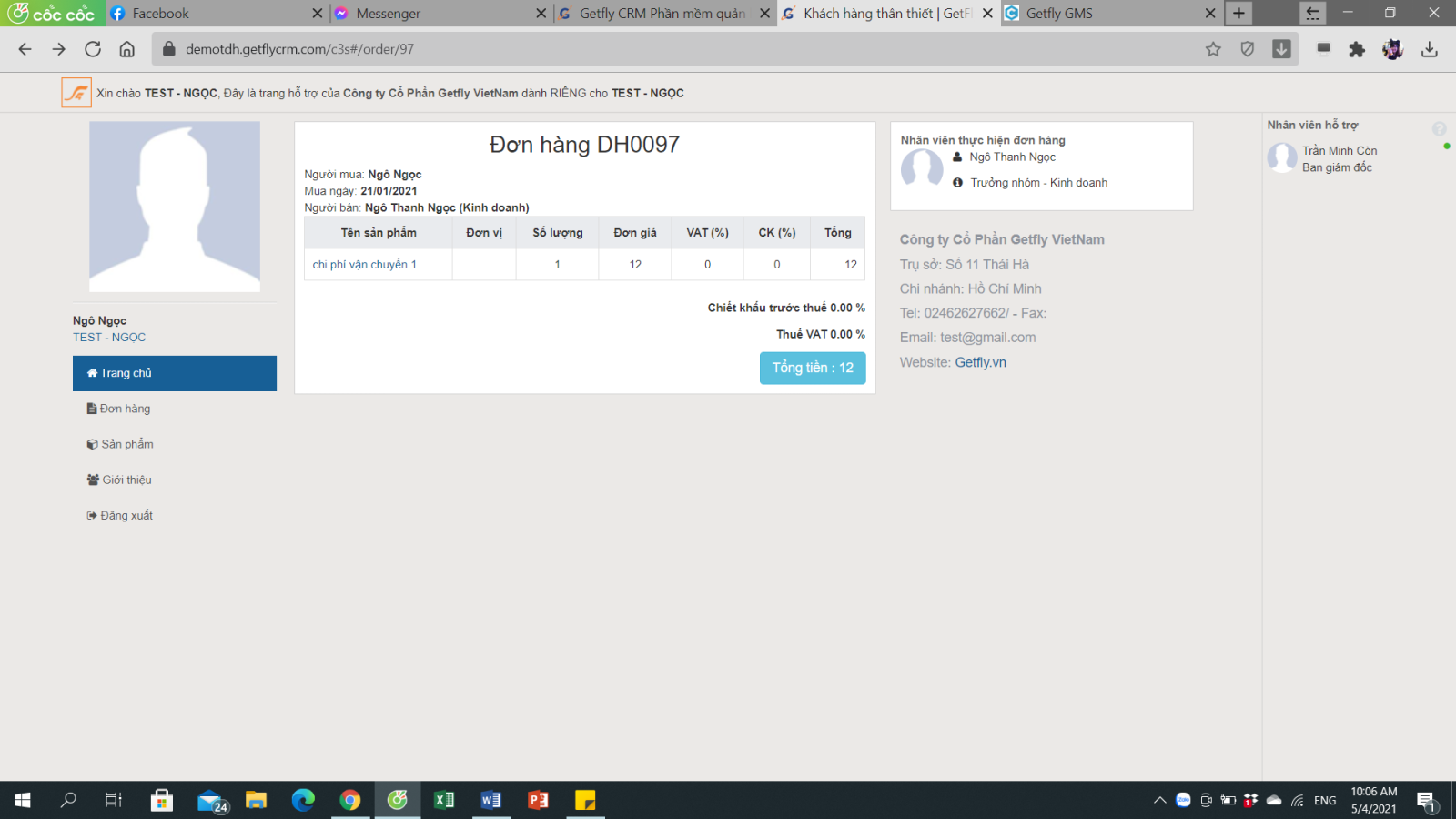 Ở đây sẽ hiển thị những đơn hàng mà anh chị đã giao dịch với Getfly, theo dõi được sản phẩm, số lượng, giá cả mà anh chị đã thanh toán.