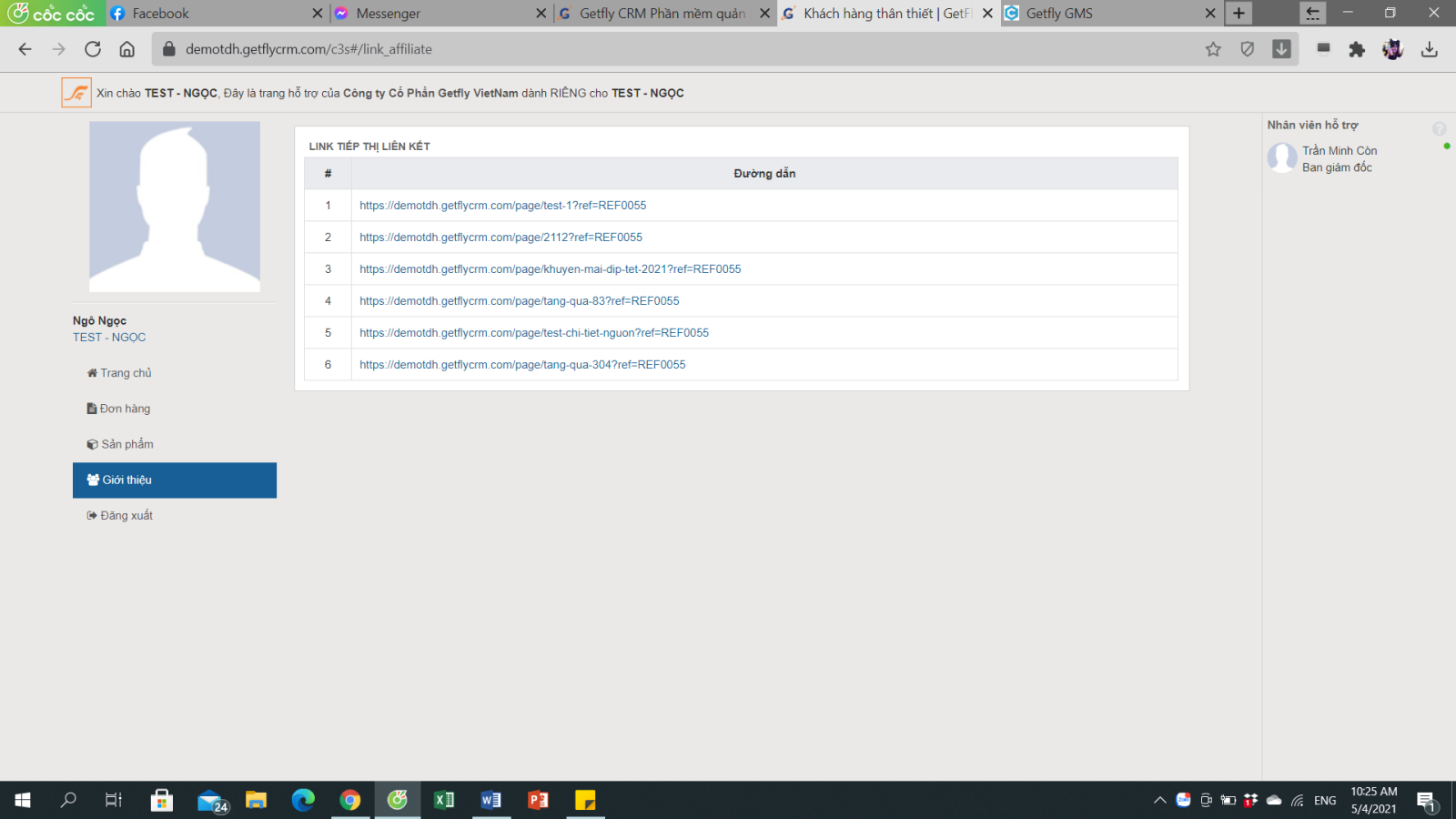 Ngoài ra, để lấy được danh sách tiếp thị liên kết (trang ladipage Getfly đã thiết kế sẵn cho từng chương trình khuyến mãi) để giới thiệu thêm khách hàng, anh chị click vào mục LẤY DANH SÁCH LINK TIẾP THỊ LIÊN KẾT.