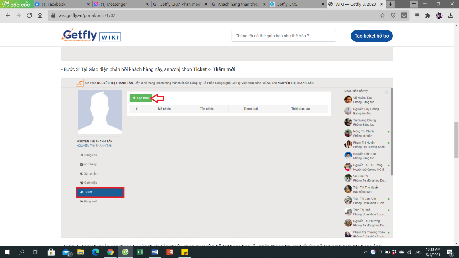 Ticket: hiển thị những ticket anh chị đã tạo và theo dõi phản hồi từ Getfly qua đây