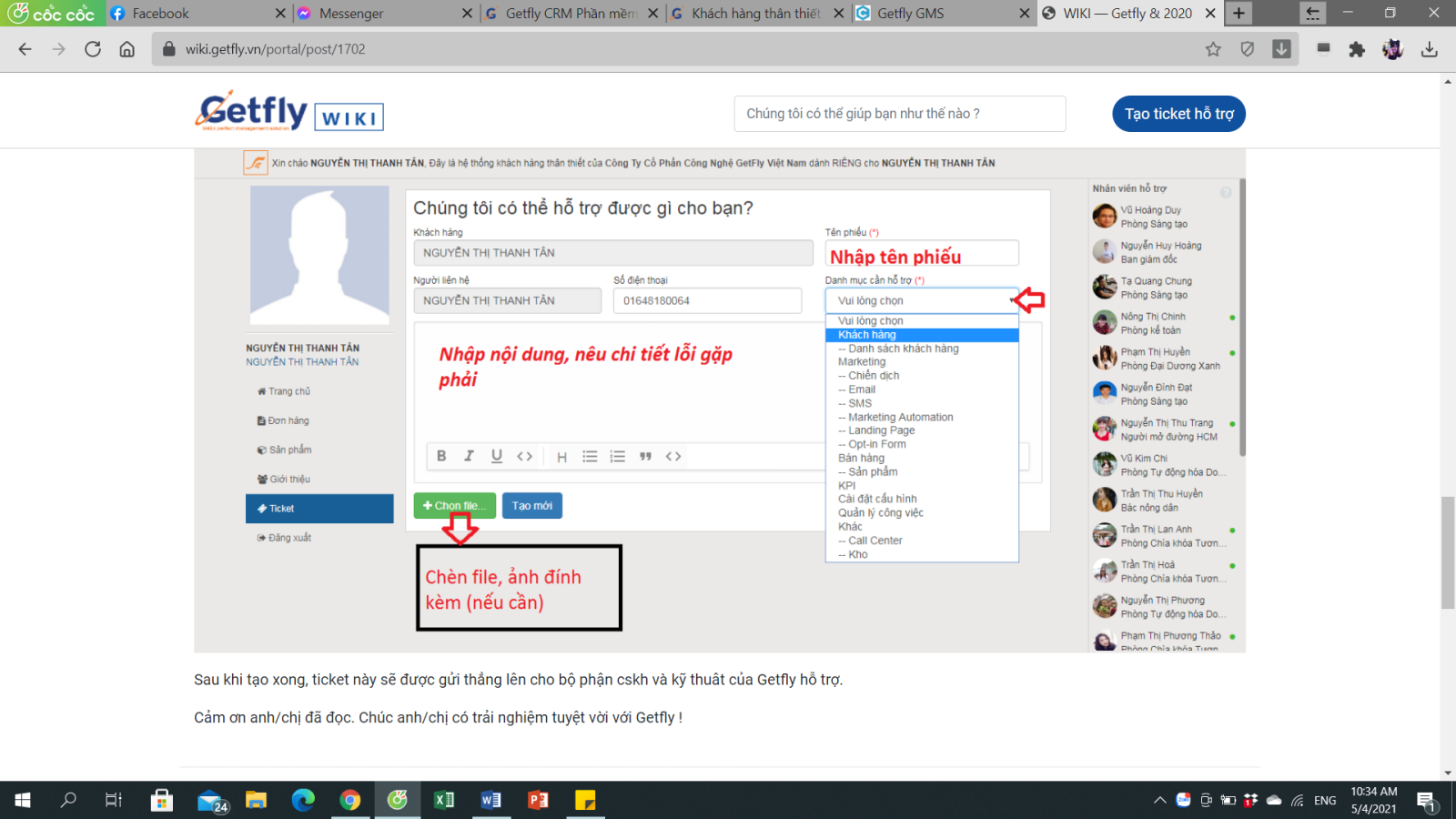 Sau khi tạo xong, ticket này sẽ được gửi thẳng lên cho bộ phận CSKH và kỹ thuật của Getfly hỗ trợ.