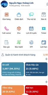 Bạn sẽ xem thống kê KPI khách hàng ở biểu tượng KPI phía bên ngoài màn hình. (Nếu bạn được phân quyền xem thống kê KPI Khách hàng thì mới xem được phần này)