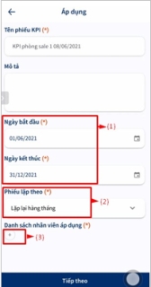(1) Chọn ngày bắt đầu và ngày kết thúc giao chỉ tiêu KPI