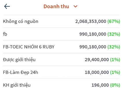 Doanh thu: là doanh thu trên tổng đơn hàng bán trong tháng. Chi tiết theo từng nguồn bạn đã phân loại.