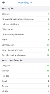 (3) Hoạt động: Thống kê toàn bộ công việc thực hiện trong tháng. Thống kê chi tiết theo dự án công việc hoặc theo loại công việc thực hiện.