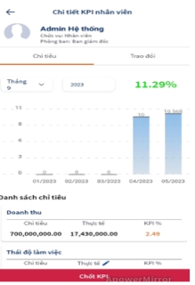 Tại bước này bạn lùi lại thời gian về quá khứ để check thử kết quả về % KPI giao cho nhân viên.