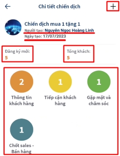 Trong màn hình Chi tiết chiến dịch sẽ hiển thị các thông tin: