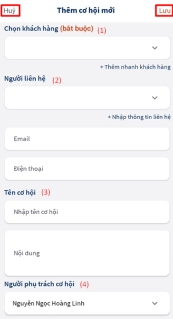 (3) Tên cơ hội: Nhập tên cơ hội và nội dung liên quan