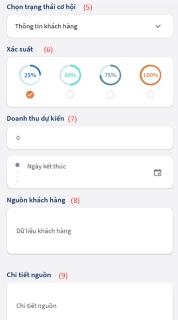 (7) Doanh thu dự kiến: Khi anh chị tư vấn cho khách hàng, tùy vào nhu cầu và mong muốn của khách, anh chị có thể dự kiến giá trị đơn hàng của khách mua là bao nhiêu để điền vào.