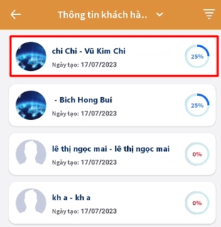 Ví dụ: Tôi muốn xem thông tin của chị Chi đang ở Trạng thái Thông tin khách hàng.