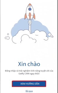 Bạn có thể click vào Xem hướng dẫn để biết được tổng quan về Getfly và các tính năng nổi bật của hệ thống. Sau đó bạn click Tiếp theo vào để vào được giao diện chính của app.