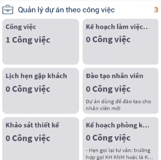 Thanh công cụ quản lý các module: Khách hàng, Công việc, Trang chủ, Thông báo và Khác