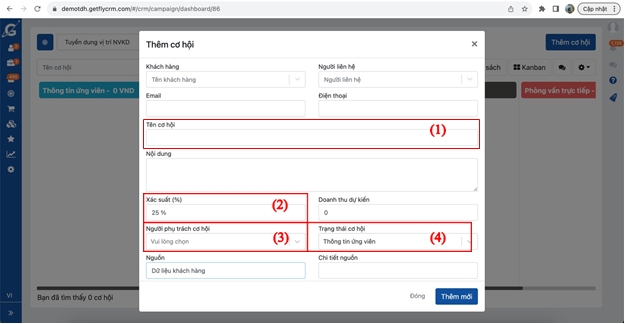 => Click Thêm mới để đưa cơ hội vào chiến dịch thành công