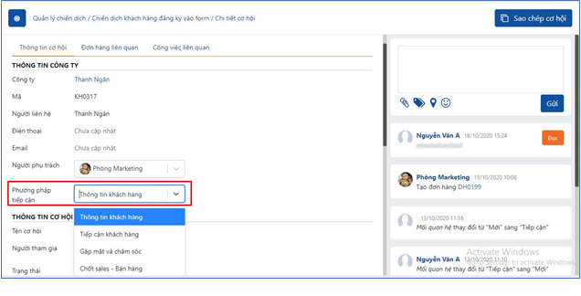 (3) Sao chép cơ hội: sao chép cơ hội sang 1 chiến dịch khác hoặc chiến dịch hiện tại (nếu cho phép trùng cơ hội trong chiến dịch) và cơ hội sẽ ở phương pháp tiếp cận đầu tiên trong chiến dịch đó.