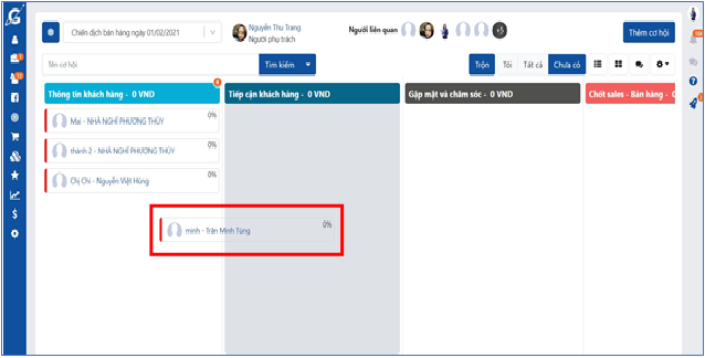 Sau khi đã cài đặt xong các thông tin cơ bản trong chiến dịch (Tại đây), với những data đã có sẵn trên hệ thống và phù hợp với chiến dịch mới tạo bạn có thể thêm mới cơ hội