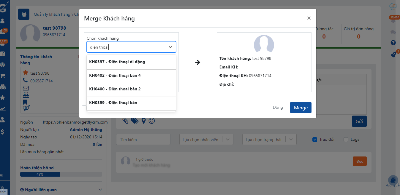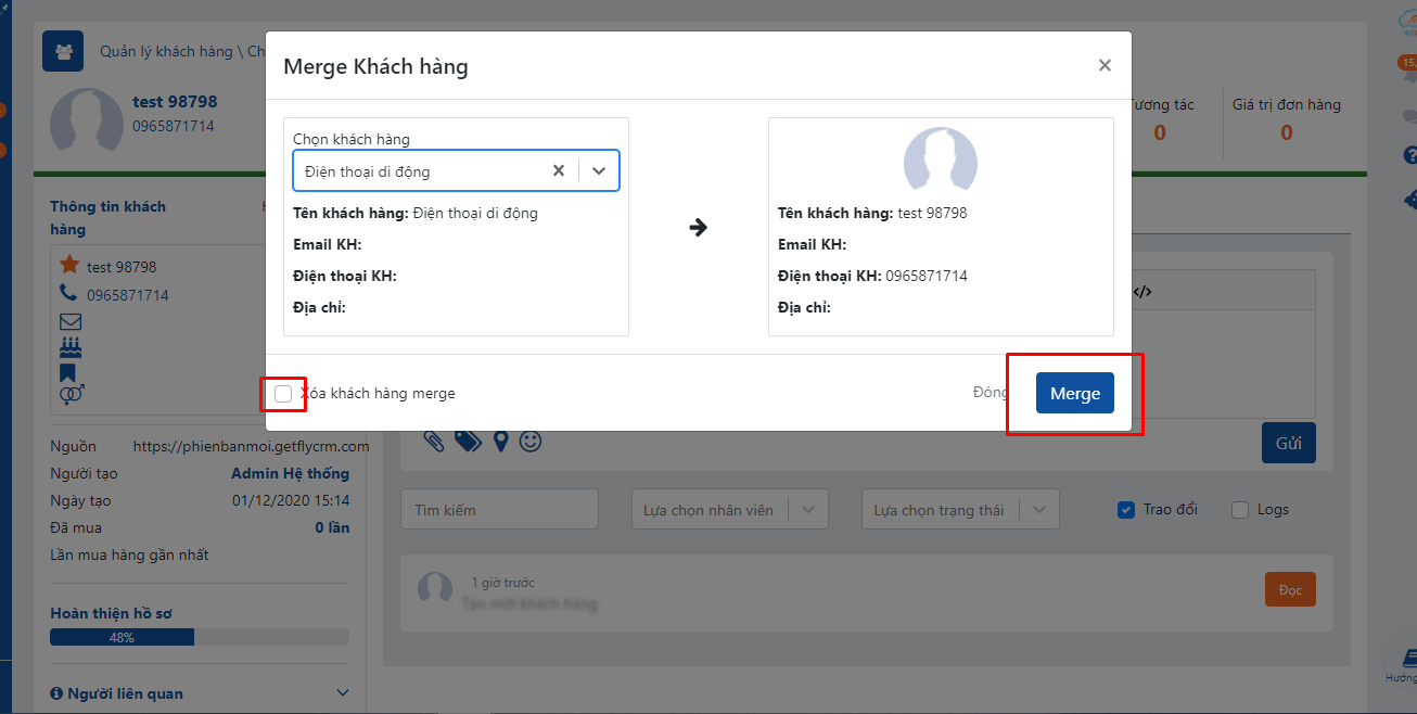 Merge khách hàng hay gộp khách hàng là tính năng giúp gộp các khách hàng có trùng thông tin trên hệ thống vào 1 khách hàng để tiện theo dõi