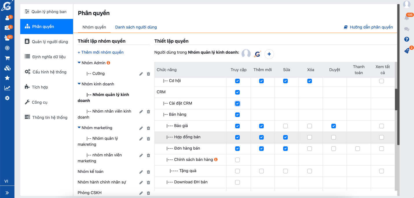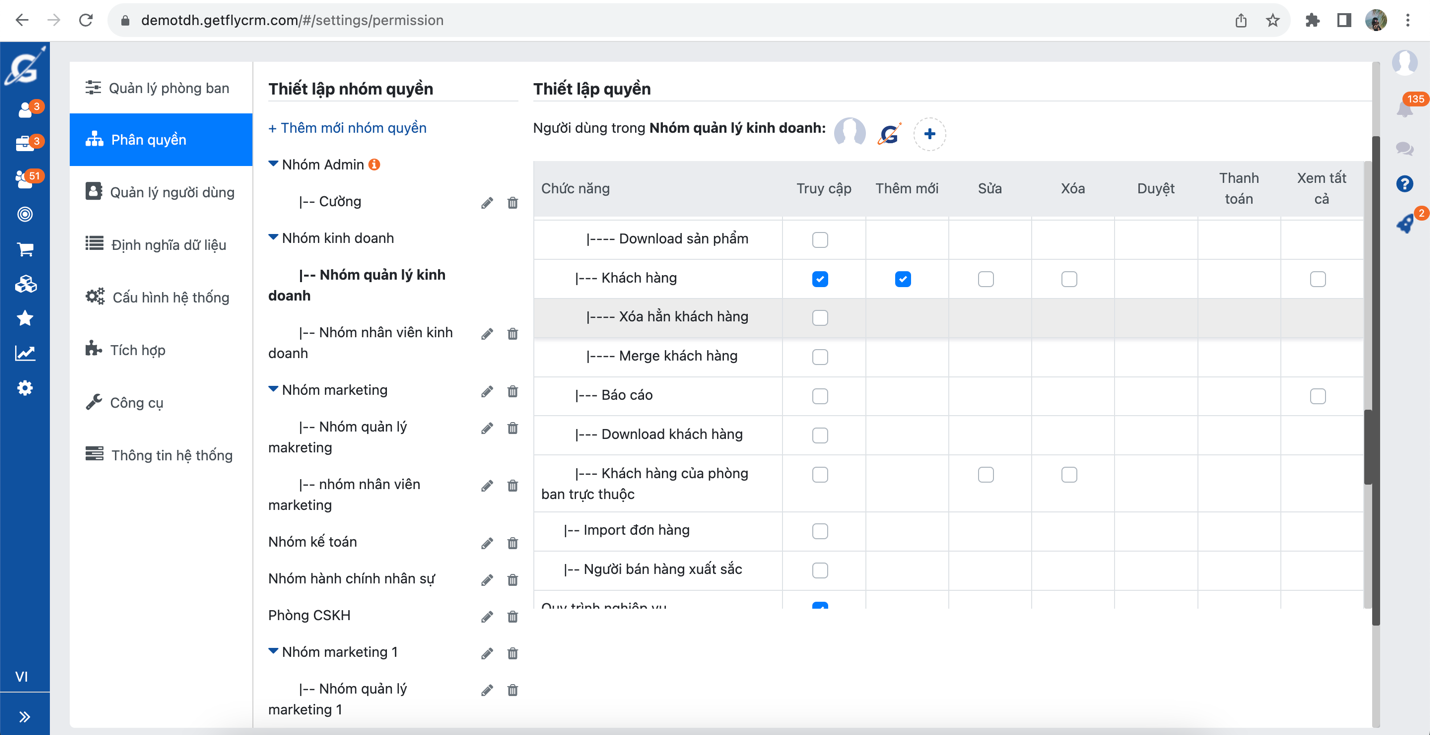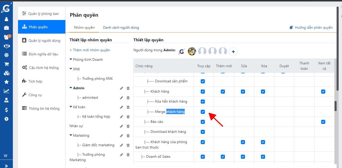 Để merge khách hàng bạn cần được phân quyền Merge khách hàng