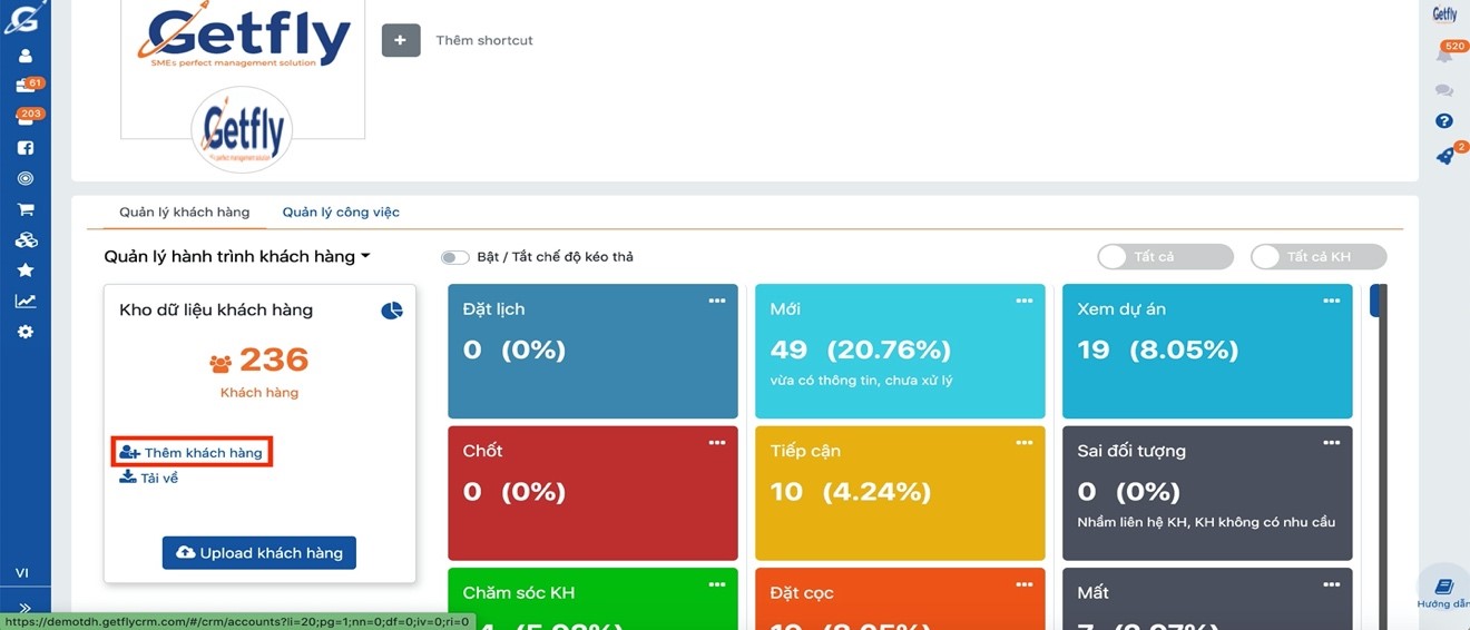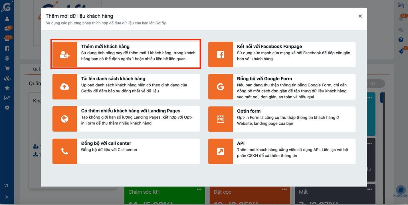 Bước 1: Tải file danh sách khách hàng mẫu của Getfly