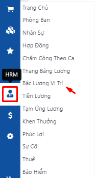 Để thiết lập bậc lương anh/chị truy cập biểu tượng HRM >> Bậc lươngvị trí