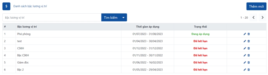 Toàn bộ bậc lương sẽ hiển thị ngoài Danh sách bậc lương vị trí
