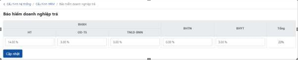 DN đóng: Thiết lập trong Cài đặt >> HRM >> Bảo hiểm >> BH doanh nghiệp trả