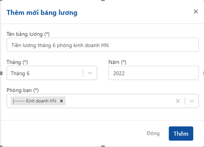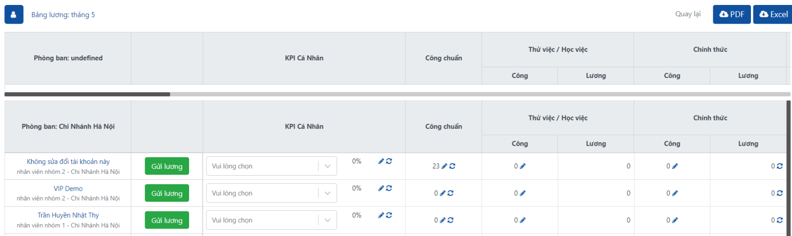 - Chọn bảng lương của phòng ban nào. Ví dụ: kinh doanh HN