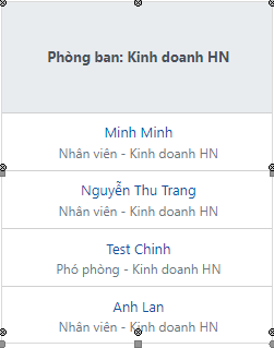 Đây là thông tin tên các nhân sự trong phòng ban tương ứng.