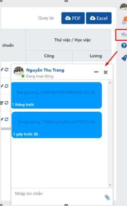 Khi click Gửi lương thì sẽ gửi bảng lương riêng của nhân sự đó qua tin nhắn trên hệ thống Getfly
