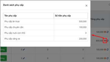 - Ấn vào biểu tượng vòng quay lại Tính lại phụ cấp.