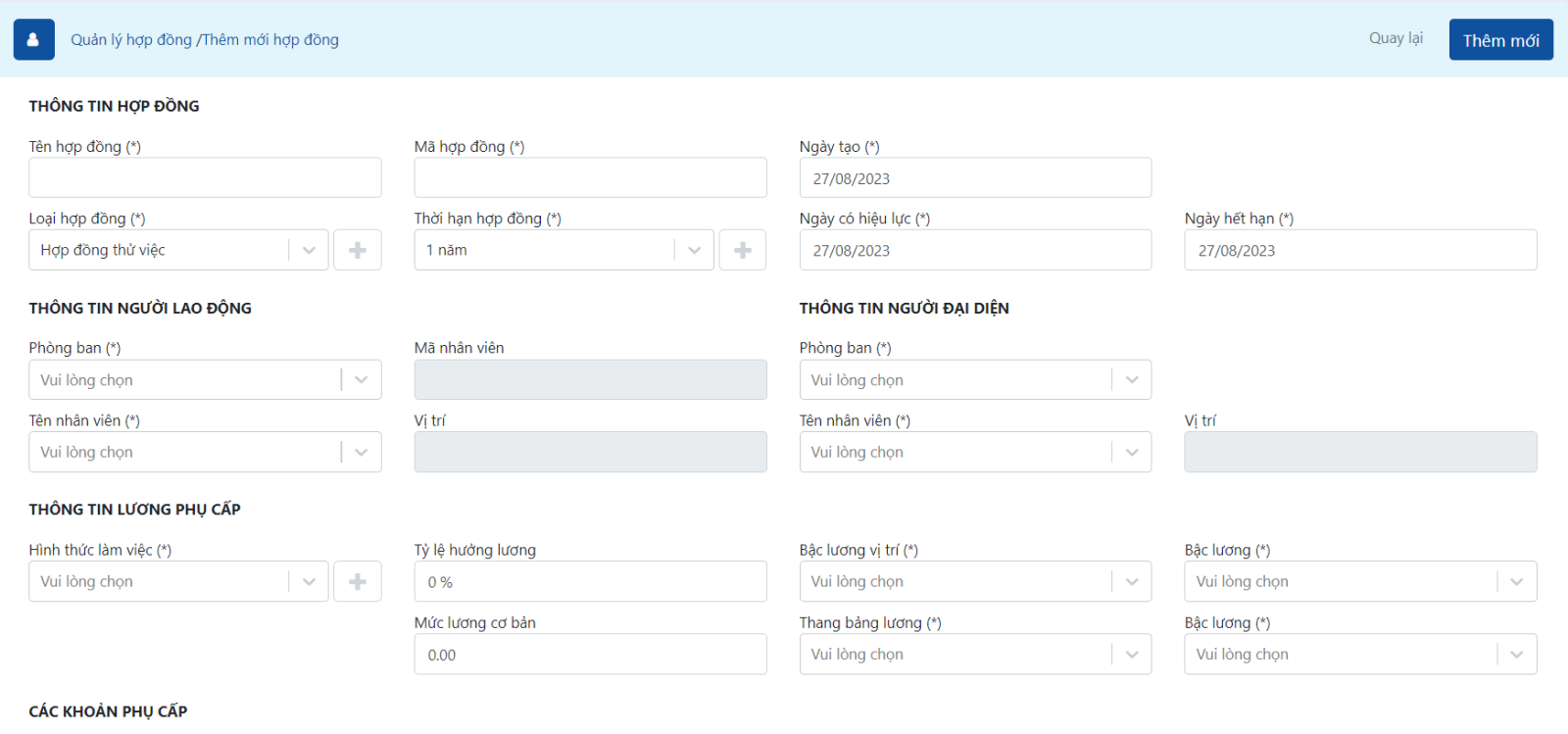 Click Thêm mới để tạo hợp đồng.