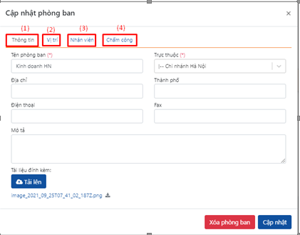 (4) Chấm công: hình thức chấm công của phòng ban đó